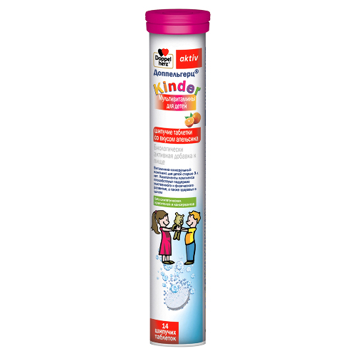 KinderМультивитамины для детей шипучие таблетки со вкусом апельсина» товарного знака «Доппельгерц®» - Витаминно-минеральный комплекс для детей старше 3-х лет.