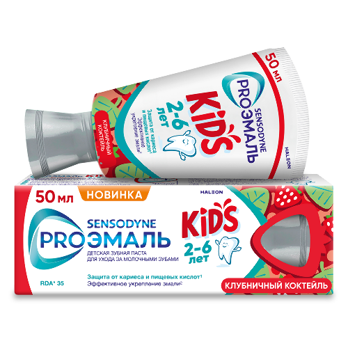 Зубная паста Сенсодин детская ПРОЭМАЛЬ Кидс Клубничный коктейль 2-6 лет 50 мл