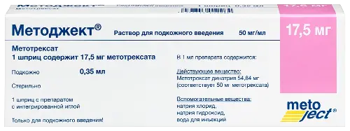 Инструкция по применению Методжект раствор для подкожного введения 17,5 мг/0,35 мл раствор для подкожного введения шприц 1 шт.