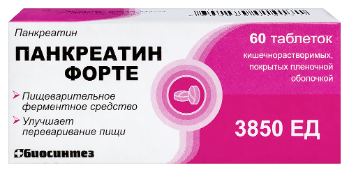 Инструкция по применению Панкреатин форте 60 шт. таблетки кишечнорастворимые , покрытые пленочной оболочкой