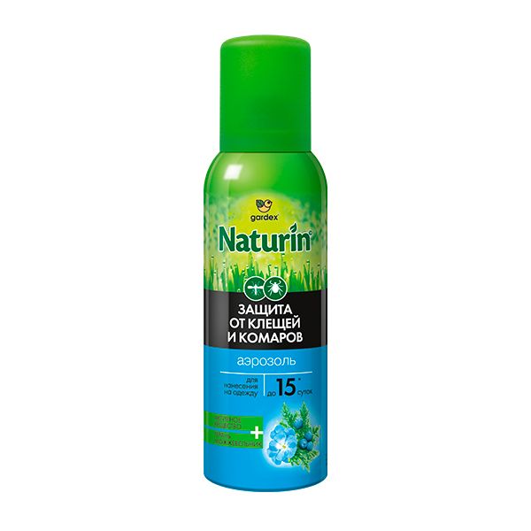 Gardex Naturin аэрозоль - эффективное средство для защиты от комаров и клещей. Защищает от укусов комаров, мокрецов и москитов до 5 суток, от клещей - до 15 суток.