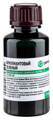 Инструкция по применению Бриллиантовый зеленый 1% раствор для наружного применения спирт исполнение флакон 25 мл флакон
