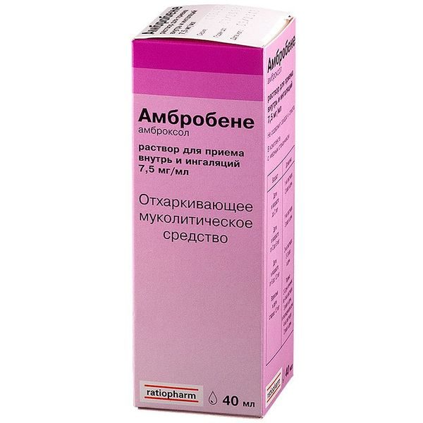 Ингаляционно. При применении препарата Амбробене в виде ингаляций можно использовать любое современное оборудование (кроме паровых ингаляторов). Перед ингаляцией препарат смешивается с 0,9% раствором натрия хлорида (для оптимально увлажнения воздуха можно развести в соотношении 1:1) и подогревается до температуры тела. Поскольку при ингаляционной терапии глубокий вдох может спровоцировать кашлевые толчки, ингаляции следует проводить в режиме обычного дыхания. Больным с бронхиальной астмой можно рекомендовать проводить ингаляцию после приема бронхолитических препаратов.В 1 мл раствора содержится 7,5 мг амброксола.