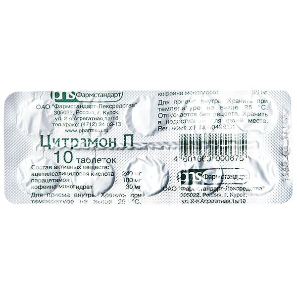 Цитрамон П табл. 240 мг+30 мг+180 мг № 10