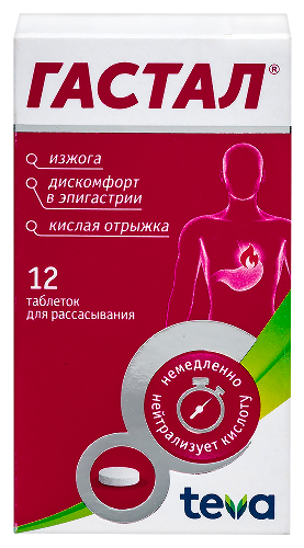 Препарат Гастал® - комбинированное антацидное средство, которое снижает повышенную кислотность желудочного сока и не оказывает стимулирующего влияния на секрецию желудочного сока.