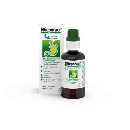 Препарат обладает выраженным противовоспалительным действием, а также нормализует тонус гладкой мускулатуры желудочно-кишечного тракта: способствует устранению спазма без влияния на нормальную перистальтику, а при пониженном тонусе и моторике оказывает тонизирующее, прокинетическое действие. В эксперименте in vitro ингибирует рост 6 подвидов Helicobacter pylori. Иберогаст® снижает интенсивность изъязвления слизистой оболочки желудка, секреции соляной кислоты, уменьшает концентрацию лейкотриенов, усиливает продукцию муцинов, повышает концентрацию мукопротективного простагландина Е2 в слизистой оболочке желудка.