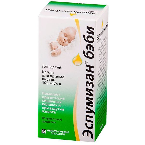 Дети до 1 года: по 5-10 капель препарата Эспумизан® бэби (добавляют в бутылочку с детским питанием или дают с помощью маленькой ложечки до/во время или после кормления).