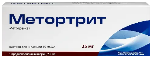 Инструкция по применению Метортрит 10 мг/мл 2,5 мл 1 шт. шприц раствор для инъекций +игла