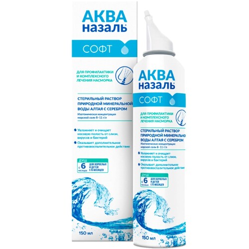 Средство для орошения и промывания полости носа «АКВАНАЗАЛЬ® Софт» с изотонической концентрацией NaCl.