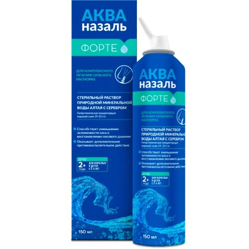 Средство для орошения и промывания полости носа «АКВАНАЗАЛЬ® Форте» - 150 мл, с гипертонической концентрацией NaCl.