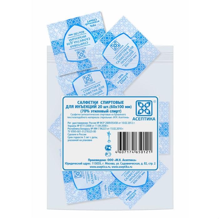 Салфетка спиртовая антисептическая 60х100 мм, 20 шт.