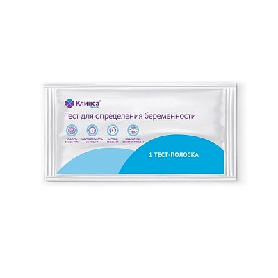 Тест на беременность Клинса НЕ электронный, 20 мме 2 полоски до задержки струйный точный. Набор предназначен для определения гормона беременности - хорионического гонадотропина человека (ХГЧ) в моче. Количество этого гормона резко возрастает через 1-2 недели после зачатия и его концентрация увеличивается в организме женщины в 5-20 раз (с 5 мМЕ/мл до 25-100 мМЕ/мл). Как и все диагностические тесты палочки, тест на беременность Клинса дает предварительный диагностический результат. Окончательный диагноз должен быть поставлен терапевтом и гинекологом при проведении клинических исследований. Выпускаются также 10 мме. - Внимательно ознакомьтесь с инструкцией перед использованием теста. - Используйте тестер сразу после вскрытия пакета. - При продолжительном контакте с атмосферной влагой тест теряет свои потребительские свойства. - После проведения теста постарайтесь не касаться участков полоски с образцом мочи